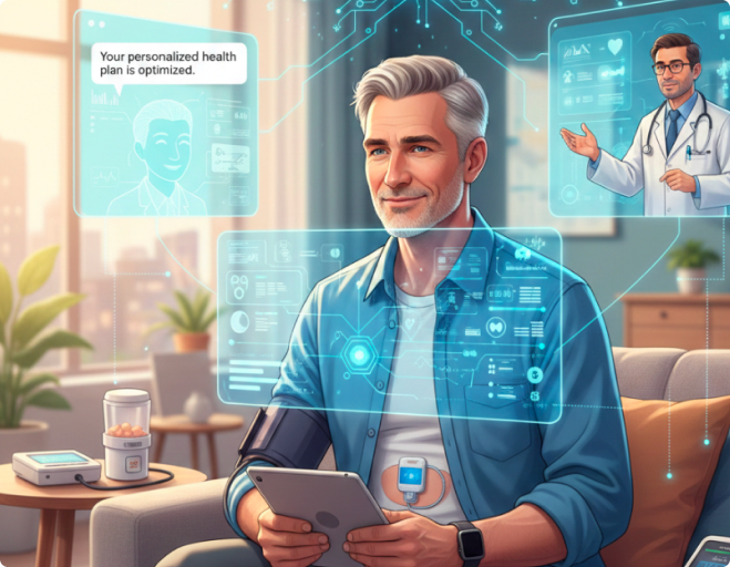AI pre-fills medical histories, flags early warning signs like rising glucose or irregular heart rhythms, and gives patients clear, human-friendly insights into their health: not just numbers and charts. Waiting time reduces drastically because patients walk in prepared, and doctors walk in informed.